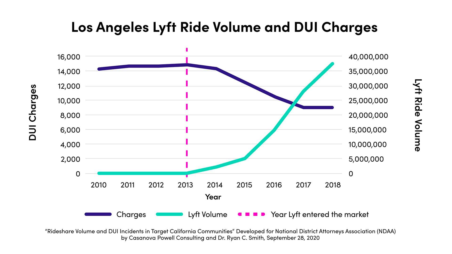 Keep watching. | | | | | | | A message from Lyft | | How Lyft is impacting drunk driving in the U.S. | | | | | | | Research shows that when Lyft enters a market, ride volumes increase and DUI incidents decrease. The impact: - Los Angeles has seen a 40% decrease in DUI charges.